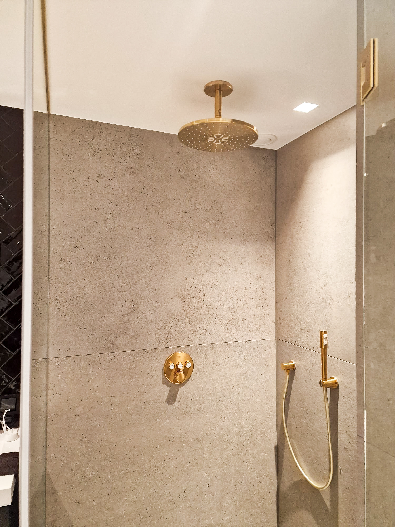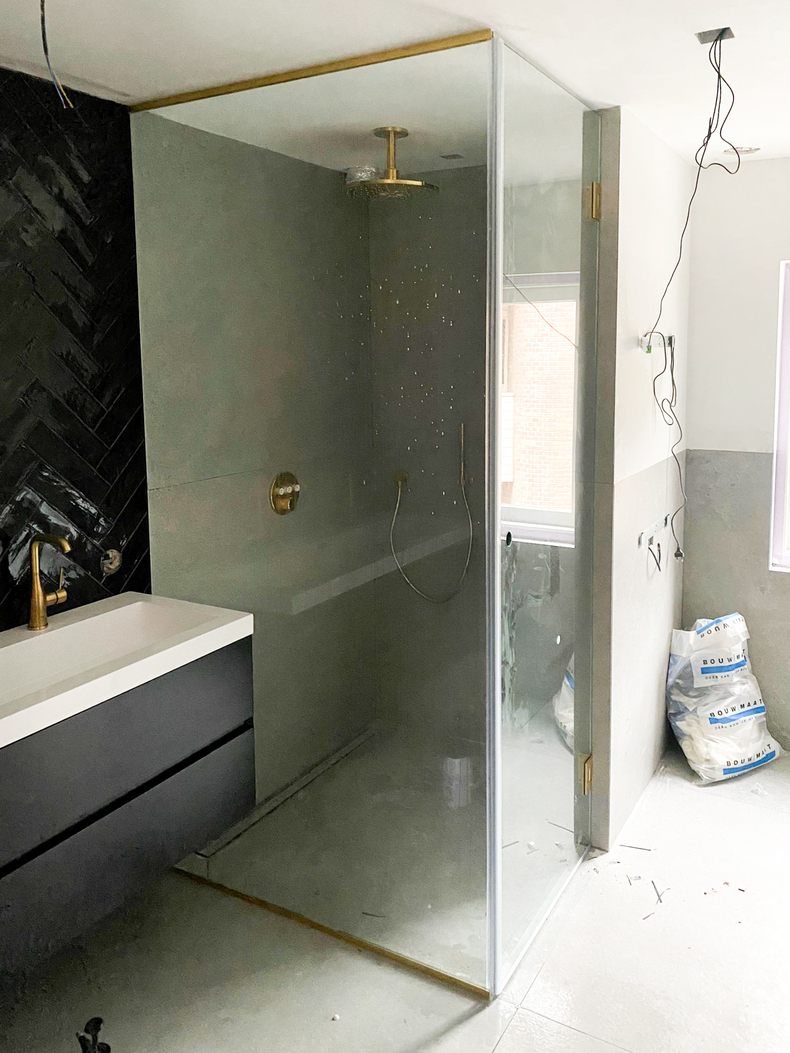 In Muiden mochten wij twee mooie badkamers realiseren in hetzelfde huis, een hoofdbadkamer en een ensuite badkamer met een inloopkast. De inloopkast is compleet op maat gemaakt.